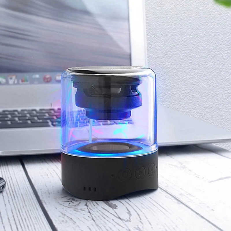 Portable Bluetooth True Wireless Speakers With Magnetic Connectable Base Transparent Bluetooth Speaker With LED Light